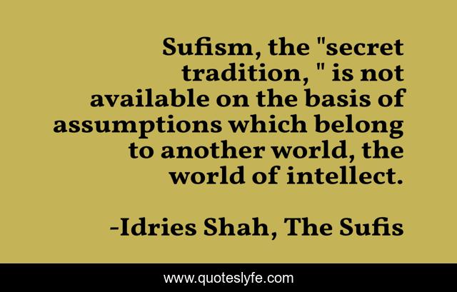 This page presents the quote "Sufism, the "secret tradition, " is not available on the basis of assumptions which belong to another world, the world of intellect.". Author of this quote is Idries Shah, The Sufis. This quote is about sufism, sufis,.