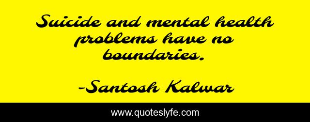 This page presents the quote "Suicide and mental health problems have no boundaries.". Author of this quote is Santosh Kalwar. This quote is about stress, suicide, anxiety-disorders, problems, mental-health, depression,.