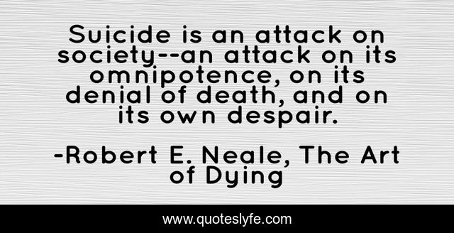"Robert E. Neale, The Art of Dying Quotes." Quoteslyfe.com, 2025. Sat. 06 Dec. 2025. <https://www.quoteslyfe.com/quote/Suicide-is-an-attack-on-society-an-21616>.