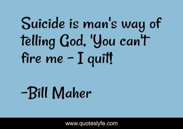 This page presents the quote "Suicide is man's way of telling God, 'You can't fire me - I quit!". Author of this quote is Bill Maher. .