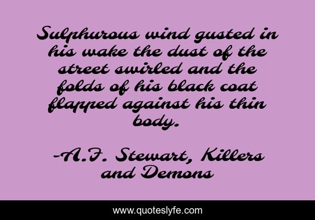 "A.F. Stewart, Killers and Demons Quotes." Quoteslyfe.com, 2025. Fri. 05 Dec. 2025. <https://www.quoteslyfe.com/quote/Sulphurous-wind-gusted-in-his-wake-the-43671>.