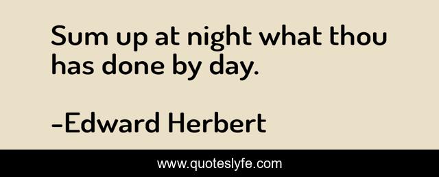 This page presents the quote "Sum up at night what thou has done by day.". Author of this quote is Edward Herbert. .