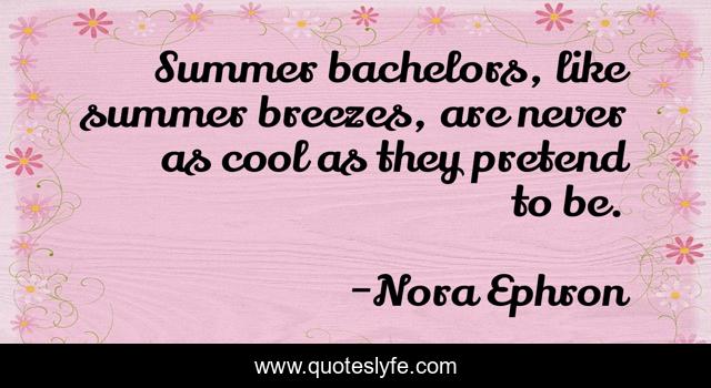 This page presents the quote "Summer bachelors, like summer breezes, are never as cool as they pretend to be.". Author of this quote is Nora Ephron. This quote is about summer, like,.