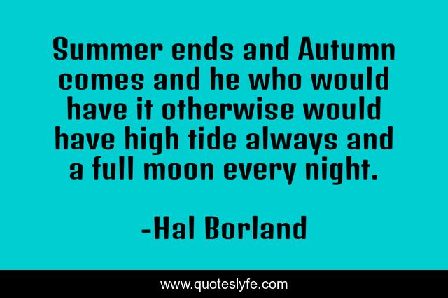 This page presents the quote "Summer ends and Autumn comes and he who would have it otherwise would have high tide always and a full moon every night.". Author of this quote is Hal Borland. .