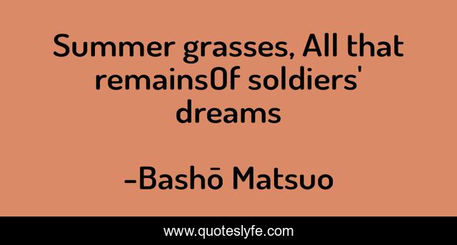 This page presents the quote "Summer grasses, All that remainsOf soldiers' dreams". Author of this quote is Bashō Matsuo. This quote is about samurai, haiku, wisdom,.