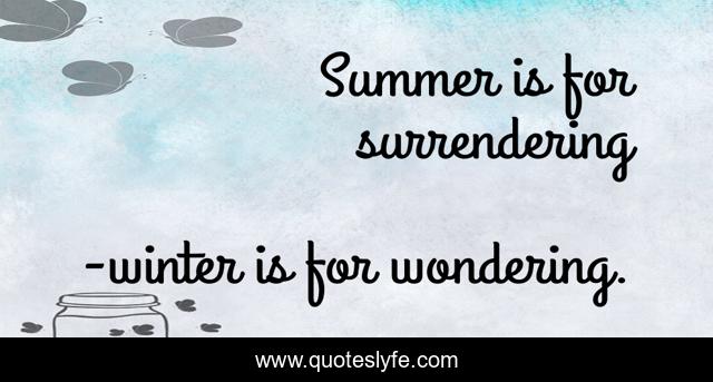 "winter is for wondering. Quotes." Quoteslyfe.com, 2025. Fri. 05 Dec. 2025. <https://www.quoteslyfe.com/quote/Summer-is-for-surrendering-74124>.