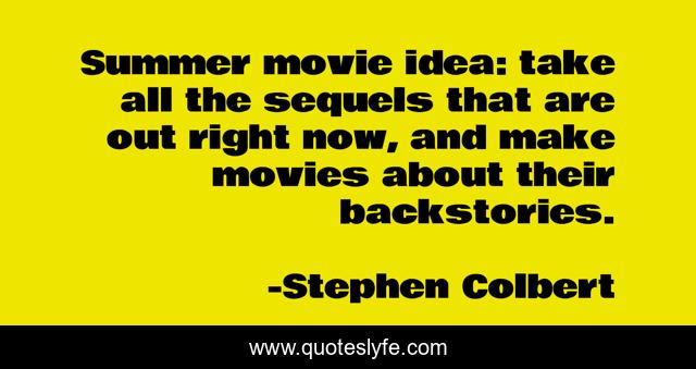 "Stephen Colbert Quotes." Quoteslyfe.com, 2025. Sat. 06 Dec. 2025. <https://www.quoteslyfe.com/quote/Summer-movie-idea-take-all-the-sequels-253894>.