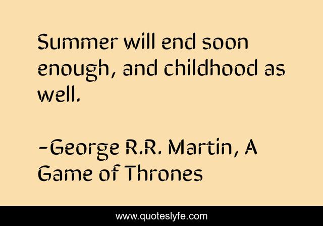 "George R.R. Martin, A Game of Thrones Quotes." Quoteslyfe.com, 2025. Sat. 06 Dec. 2025. <https://www.quoteslyfe.com/quote/Summer-will-end-soon-enough-and-childhood-190775>.