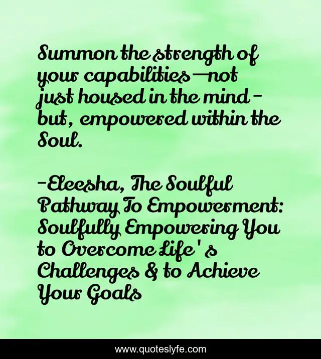 "Eleesha, The Soulful Pathway To Empowerment: Soulfully Empowering You to Overcome Life's Challenges & to Achieve Your Goals Quotes." Quoteslyfe.com, 2025. Fri. 05 Dec. 2025. <https://www.quoteslyfe.com/quote/Summon-the-strength-of-your-capabilities-not-205104>.