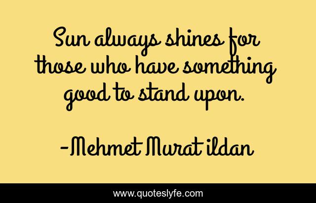 This page presents the quote "Sun always shines for those who have something good to stand upon.". Author of this quote is Mehmet Murat ildan. .