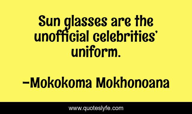 "Mokokoma Mokhonoana Quotes." Quoteslyfe.com, 2025. Mon. 08 Dec. 2025. <https://www.quoteslyfe.com/quote/Sun-glasses-are-the-unofficial-celebrities-uniform-245177>.