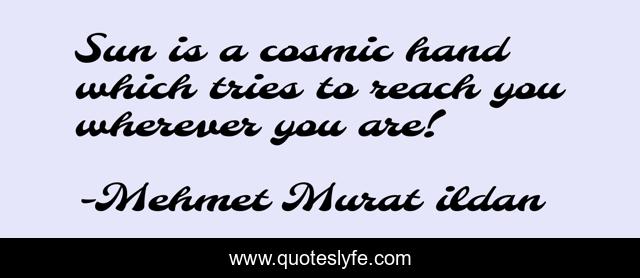 This page presents the quote "Sun is a cosmic hand which tries to reach you wherever you are!". Author of this quote is Mehmet Murat ildan. .