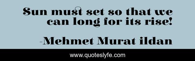 This page presents the quote "Sun must set so that we can long for its rise!". Author of this quote is Mehmet Murat ildan. .