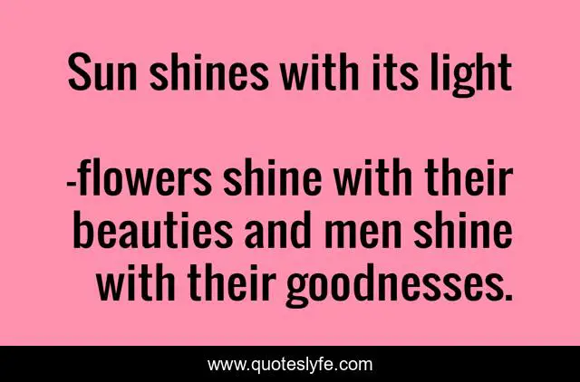 "flowers shine with their beauties and men shine with their goodnesses. Quotes." Quoteslyfe.com, 2025. Sat. 06 Dec. 2025. <https://www.quoteslyfe.com/quote/Sun-shines-with-its-light-221551>.