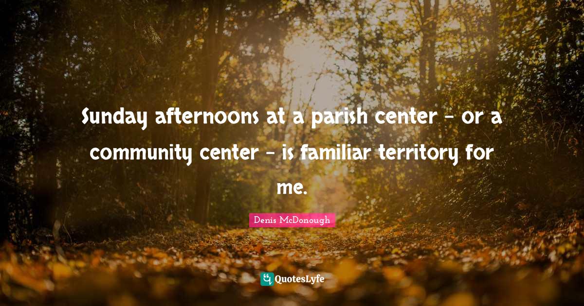 This page presents the quote "Sunday afternoons at a parish center - or a community center - is familiar territory for me.". Author of this quote is Denis McDonough. This quote is about sunday afternoons, territory, afternoon, community, familiar, parish, sunday,.