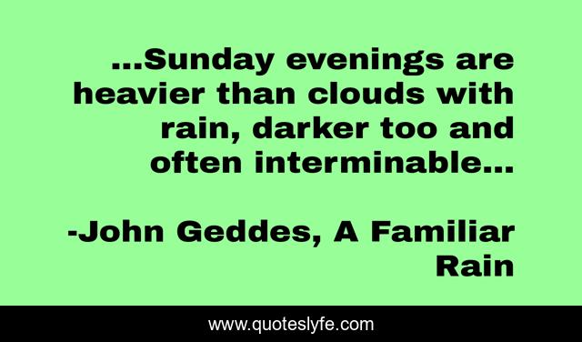 "John Geddes, A Familiar Rain Quotes." Quoteslyfe.com, 2025. Sat. 06 Dec. 2025. <https://www.quoteslyfe.com/quote/Sunday-evenings-are-heavier-than-clouds-with-150350>.