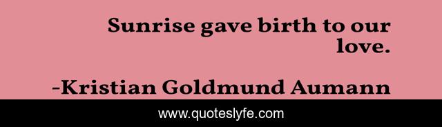 This page presents the quote "Sunrise gave birth to our love.". Author of this quote is Kristian Goldmund Aumann. This quote is about love, sunrise, affection,.