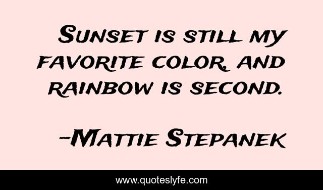 This page presents the quote "Sunset is still my favorite color, and rainbow is second.". Author of this quote is Mattie Stepanek. This quote is about color, rainbow, sunset,.