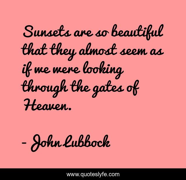 This page presents the quote "Sunsets are so beautiful that they almost seem as if we were looking through the gates of Heaven.". Author of this quote is John Lubbock. This quote is about beautiful, looking, heaven,.