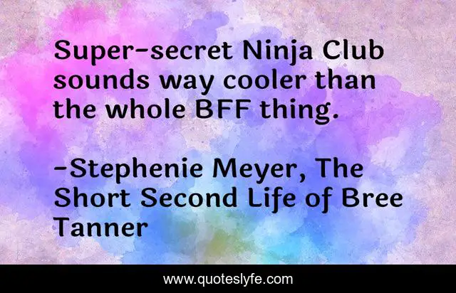 "Stephenie Meyer, The Short Second Life of Bree Tanner Quotes." Quoteslyfe.com, 2025. Mon. 08 Dec. 2025. <https://www.quoteslyfe.com/quote/Super-secret-Ninja-Club-sounds-way-cooler-190216>.