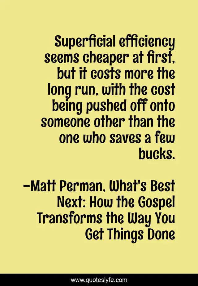 "Matt Perman, What's Best Next: How the Gospel Transforms the Way You Get Things Done Quotes." Quoteslyfe.com, 2025. Fri. 05 Dec. 2025. <https://www.quoteslyfe.com/quote/Superficial-efficiency-seems-cheaper-at-first-but-226891>.