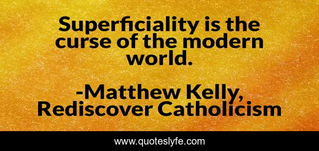 "Matthew Kelly, Rediscover Catholicism Quotes." Quoteslyfe.com, 2025. Sun. 07 Dec. 2025. <https://www.quoteslyfe.com/quote/Superficiality-is-the-curse-of-the-modern-9702>.