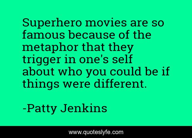 This page presents the quote "Superhero movies are so famous because of the metaphor that they trigger in one's self about who you could be if things were different.". Author of this quote is Patty Jenkins. This quote is about movies, self,.