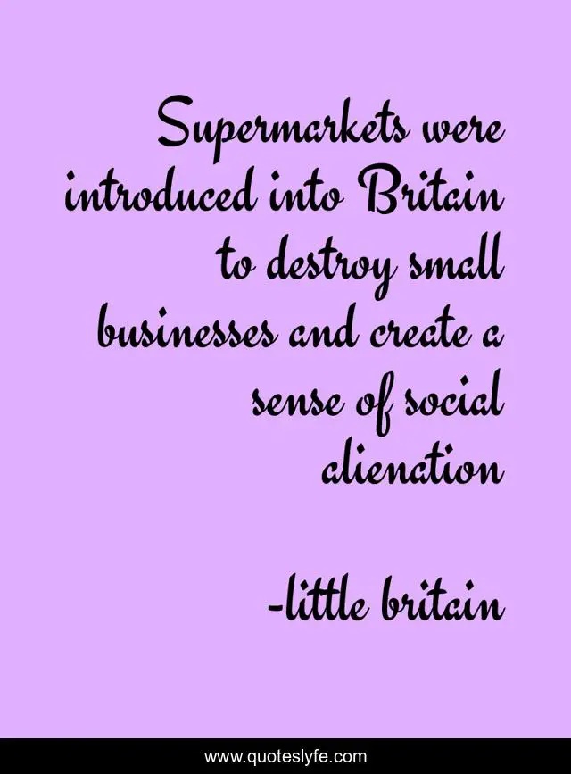 This page presents the quote "Supermarkets were introduced into Britain to destroy small businesses and create a sense of social alienation". Author of this quote is little britain. .