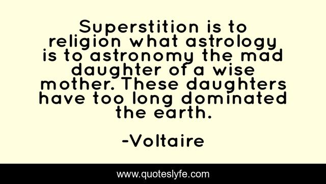 This page presents the quote "Superstition is to religion what astrology is to astronomy the mad daughter of a wise mother. These daughters have too long dominated the earth.". Author of this quote is Voltaire. This quote is about daughter, wise, mother,.