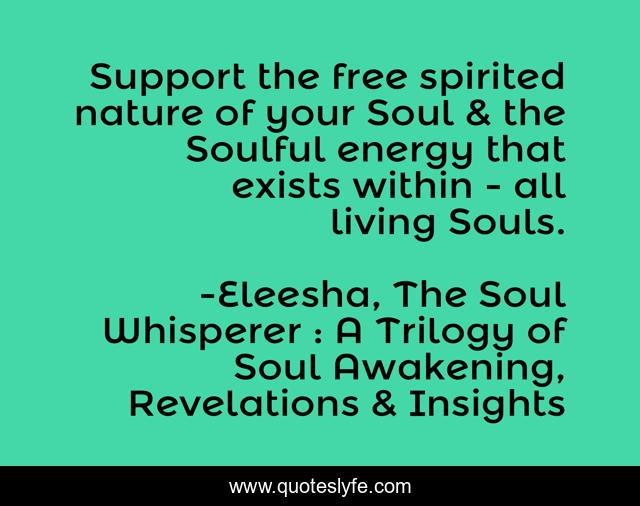 "Eleesha, The Soul Whisperer : A Trilogy of Soul Awakening, Revelations & Insights Quotes." Quoteslyfe.com, 2025. Fri. 05 Dec. 2025. <https://www.quoteslyfe.com/quote/Support-the-free-spirited-nature-of-your-205023>.
