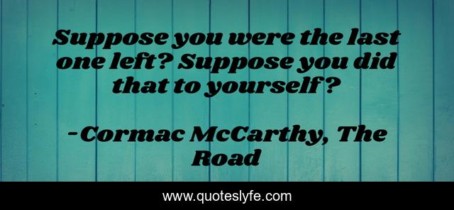 "Cormac McCarthy, The Road Quotes." Quoteslyfe.com, 2025. Sat. 06 Dec. 2025. <https://www.quoteslyfe.com/quote/Suppose-you-were-the-last-one-left-163854>.