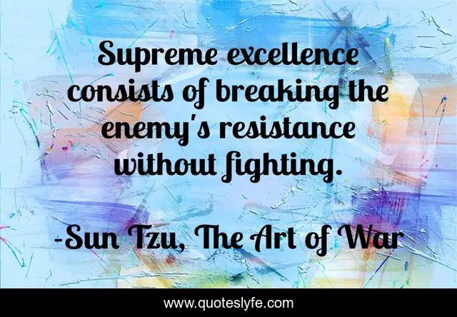 "Sun Tzu, The Art of War Quotes." Quoteslyfe.com, 2025. Sun. 07 Dec. 2025. <https://www.quoteslyfe.com/quote/Supreme-excellence-consists-of-breaking-the-enemy-31968>.