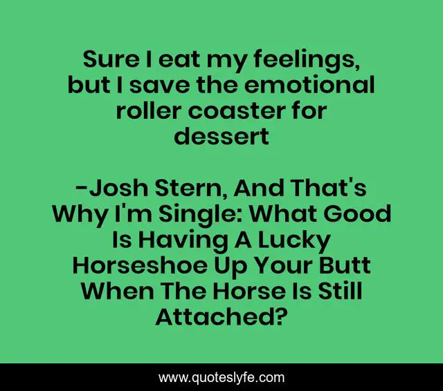 "Josh Stern, And That's Why I'm Single: What Good Is Having A Lucky Horseshoe Up Your Butt When The Horse Is Still Attached? Quotes." Quoteslyfe.com, 2025. Mon. 08 Dec. 2025. <https://www.quoteslyfe.com/quote/Sure-I-eat-my-feelings-but-I-162128>.