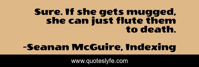This page presents the quote "Sure. If she gets mugged, she can just flute them to death.". Author of this quote is Seanan McGuire, Indexing. This quote is about fairy-tales, humor,.