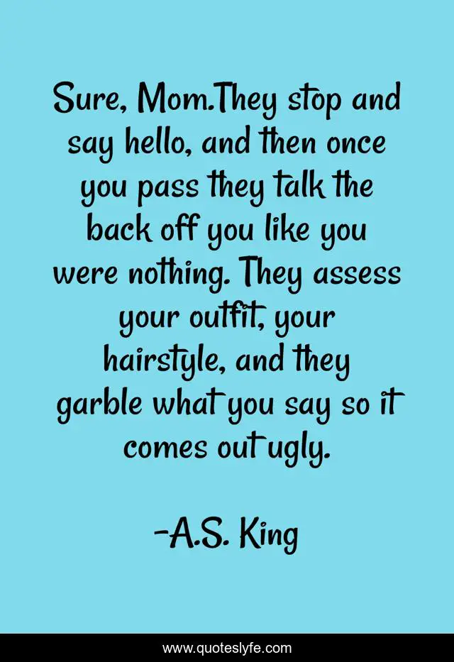 "A.S. King Quotes." Quoteslyfe.com, 2025. Fri. 05 Dec. 2025. <https://www.quoteslyfe.com/quote/Sure-Mom-They-stop-and-say-hello-166679>.