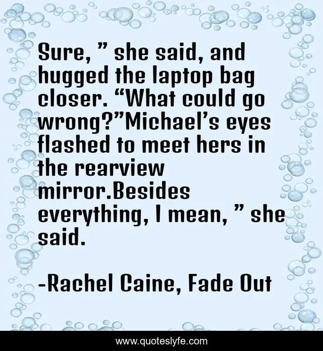 "Rachel Caine, Fade Out Quotes." Quoteslyfe.com, 2025. Sat. 06 Dec. 2025. <https://www.quoteslyfe.com/quote/Sure-she-said-and-hugged-the-laptop-6570>.