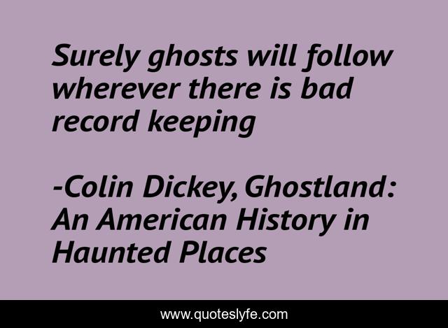 This page presents the quote "Surely ghosts will follow wherever there is bad record keeping". Author of this quote is Colin Dickey, Ghostland: An American History in Haunted Places. This quote is about records, ghosts,.