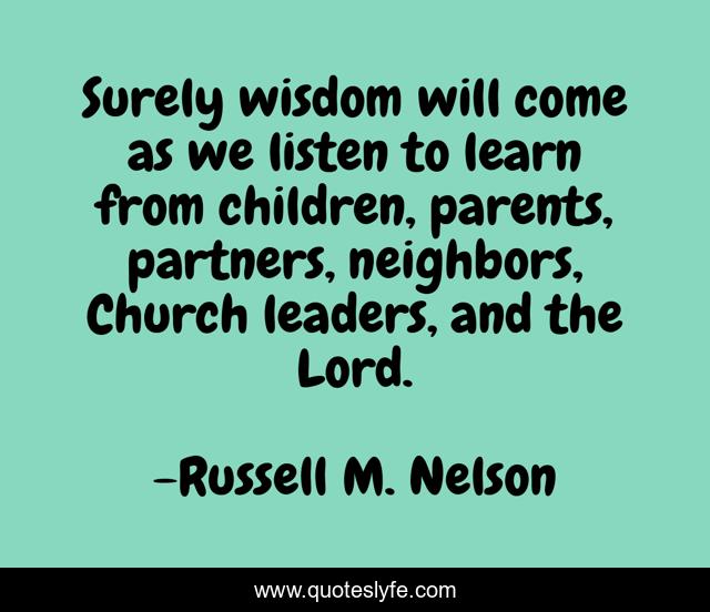 This page presents the quote "Surely wisdom will come as we listen to learn from children, parents, partners, neighbors, Church leaders, and the Lord.". Author of this quote is Russell M. Nelson. This quote is about neighbors, parents, children,.