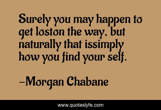 This page presents the quote "Surely you may happen to get loston the way, but naturally that issimply how you find your self.". Author of this quote is Morgan Chabane. This quote is about path, lost, nature,.