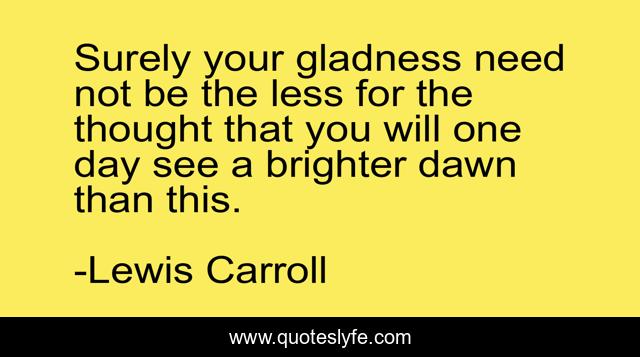 This page presents the quote "Surely your gladness need not be the less for the thought that you will one day see a brighter dawn than this.". Author of this quote is Lewis Carroll. .