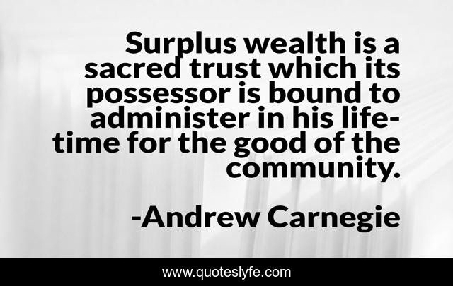 This page presents the quote "Surplus wealth is a sacred trust which its possessor is bound to administer in his life-time for the good of the community.". Author of this quote is Andrew Carnegie. .