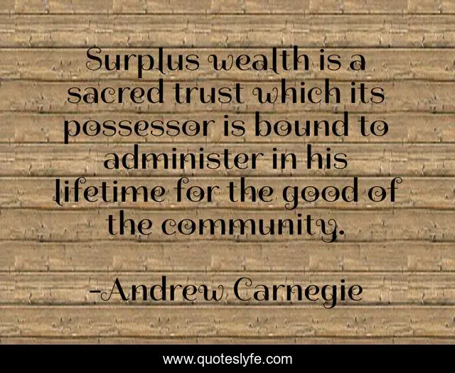 "Andrew Carnegie Quotes." Quoteslyfe.com, 2025. Mon. 08 Dec. 2025. <https://www.quoteslyfe.com/quote/Surplus-wealth-is-a-sacred-trust-which-309263>.