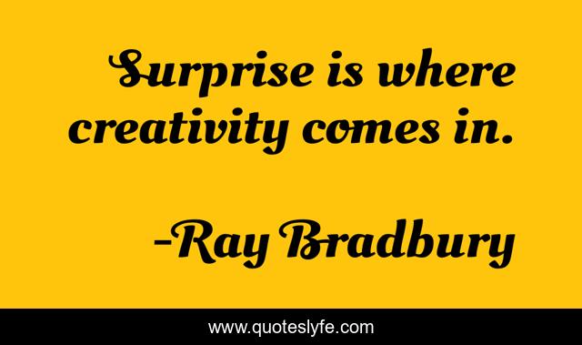"Ray Bradbury Quotes." Quoteslyfe.com, 2025. Sat. 06 Dec. 2025. <https://www.quoteslyfe.com/quote/Surprise-is-where-creativity-comes-in-28614>.