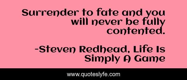 This page presents the quote "Surrender to fate and you will never be fully contented.". Author of this quote is Steven Redhead, Life Is Simply A Game. This quote is about surrender, contented, fate,.