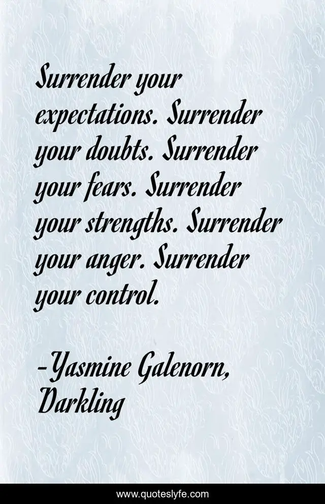 "Yasmine Galenorn, Darkling Quotes." Quoteslyfe.com, 2025. Fri. 05 Dec. 2025. <https://www.quoteslyfe.com/quote/Surrender-your-expectations-Surrender-your-doubts-Surrender-131591>.