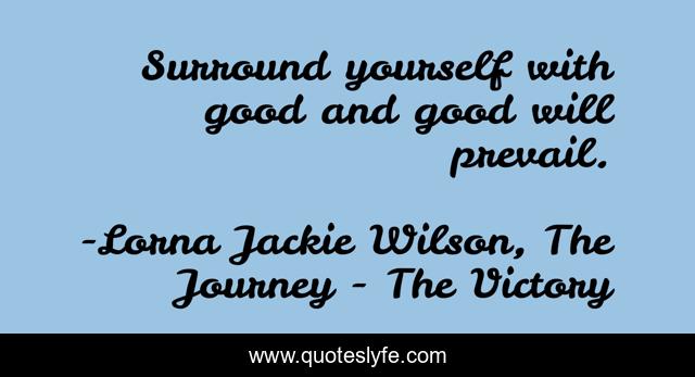 This page presents the quote "Surround yourself with good and good will prevail.". Author of this quote is Lorna Jackie Wilson, The Journey - The Victory. .