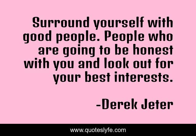 This page presents the quote "Surround yourself with good people. People who are going to be honest with you and look out for your best interests.". Author of this quote is Derek Jeter. This quote is about good, yourself,.