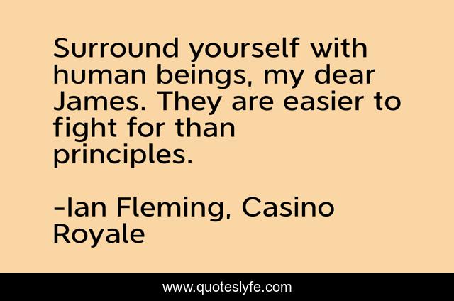 This page presents the quote "Surround yourself with human beings, my dear James. They are easier to fight for than principles.". Author of this quote is Ian Fleming, Casino Royale. This quote is about james-bond, principles,.