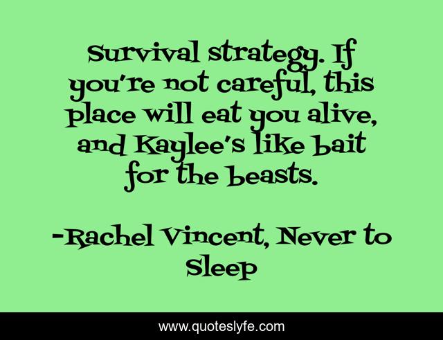 "Rachel Vincent, Never to Sleep Quotes." Quoteslyfe.com, 2025. Mon. 08 Dec. 2025. <https://www.quoteslyfe.com/quote/Survival-strategy-If-you-re-not-careful-148394>.