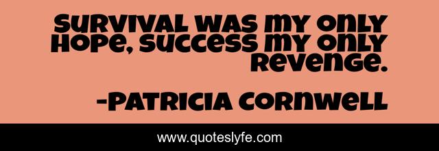 This page presents the quote "Survival was my only hope, success my only revenge.". Author of this quote is Patricia Cornwell. This quote is about survival, revenge, success,.